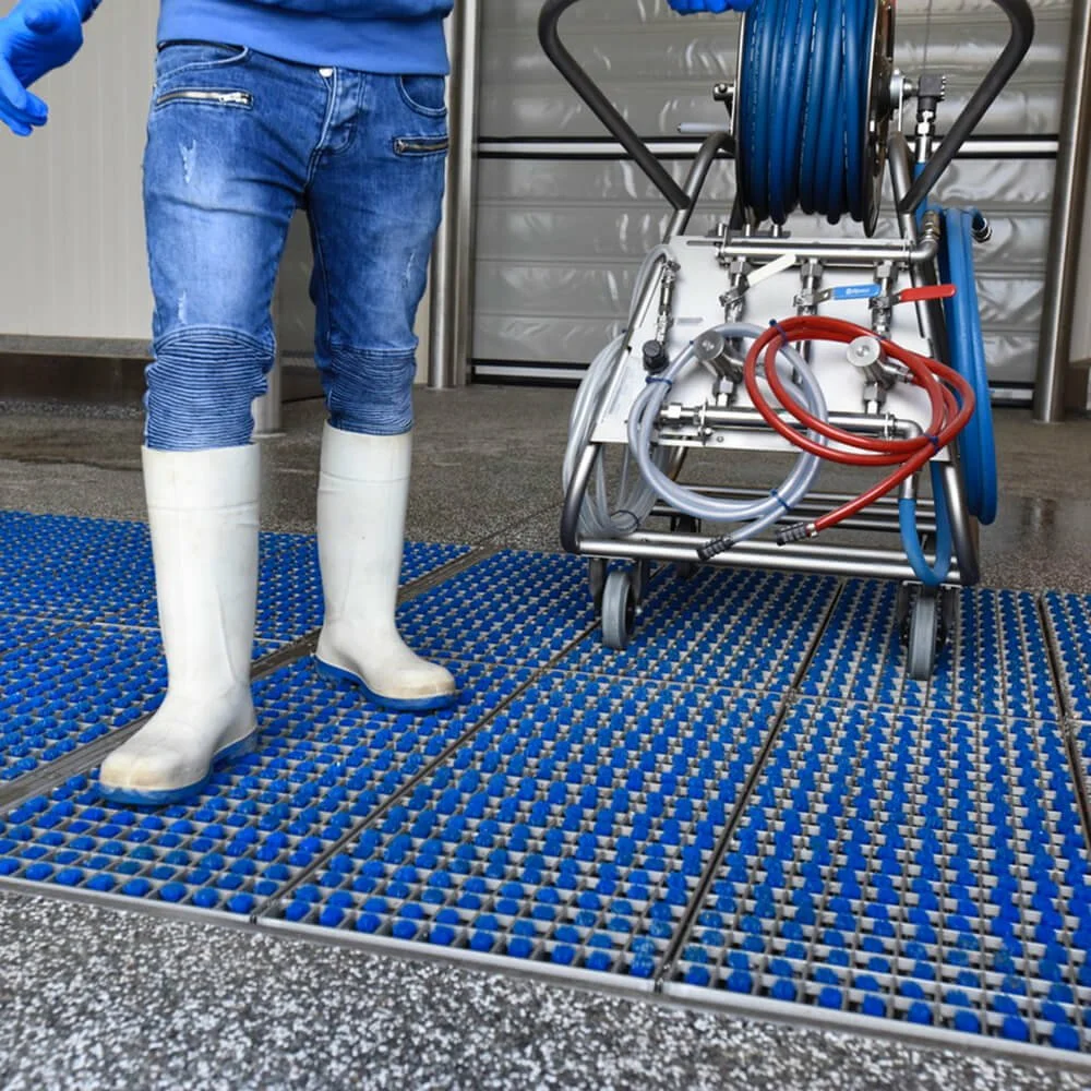 Limpar e sanitizar corretamente sapatos ou pneus é sempre um desafio. A sujeira presa nas ranhuras dos pneus ou nas reentrâncias das solas não pode ser removida, o que compromete a limpeza e a sanitariedade do ambiente. Os processos atuais (pedilúvios) são, em grande parte, pouco eficientes. O sistema Heute Stepgate promove a limpeza mecânica e, ao mesmo tempo, permite a aplicação de um sanitizante de sua escolha.